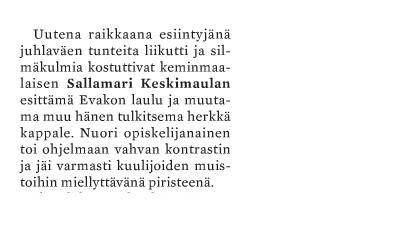 - “Emme tarvitse kokonaista orkesteria – Sallamarin esitykset koskettavat enemmän.”